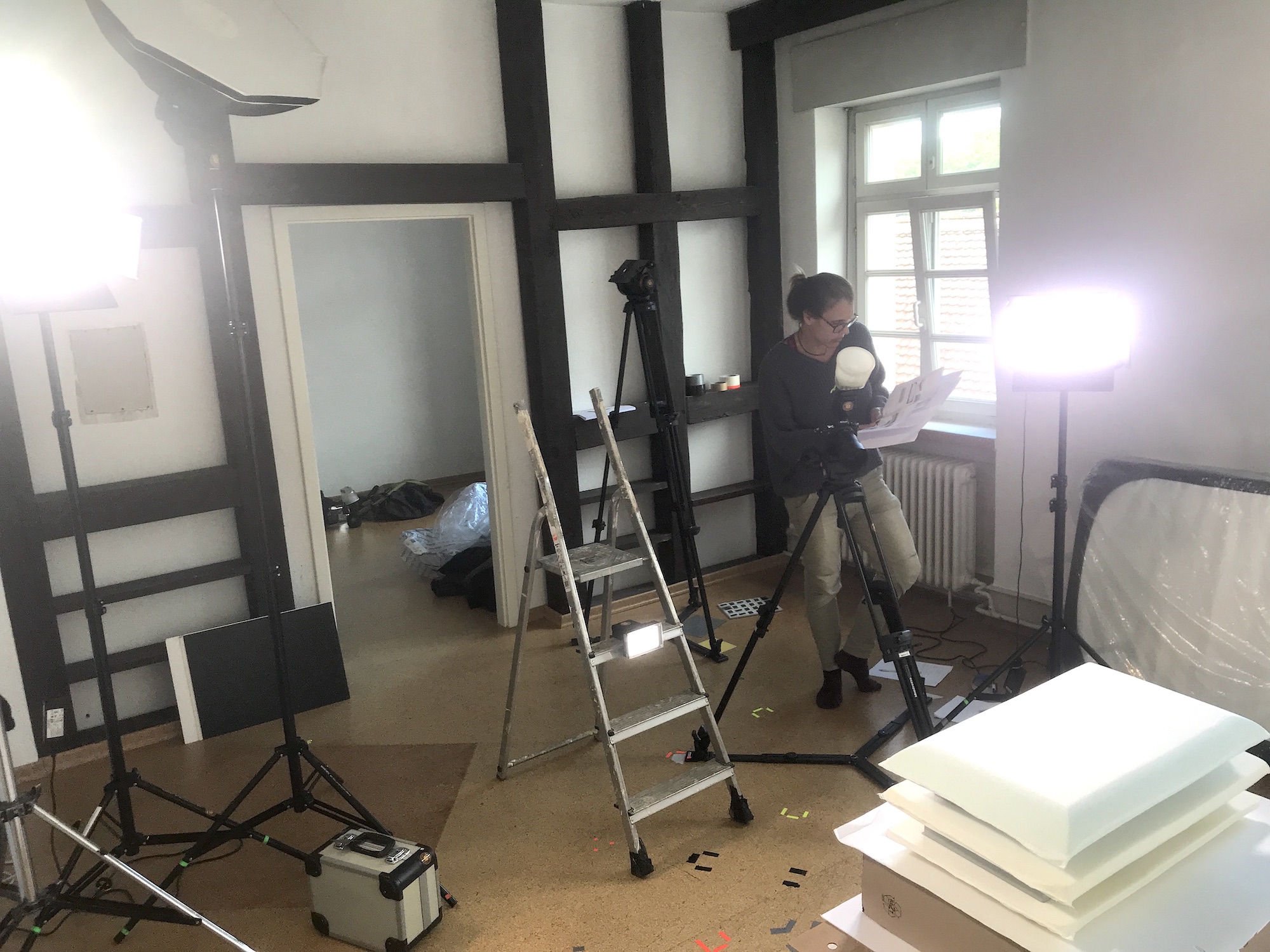 Wir buchten kurzfristig ein leerstehendes Haus und errichteten ein provisorisches Fotostudio.
